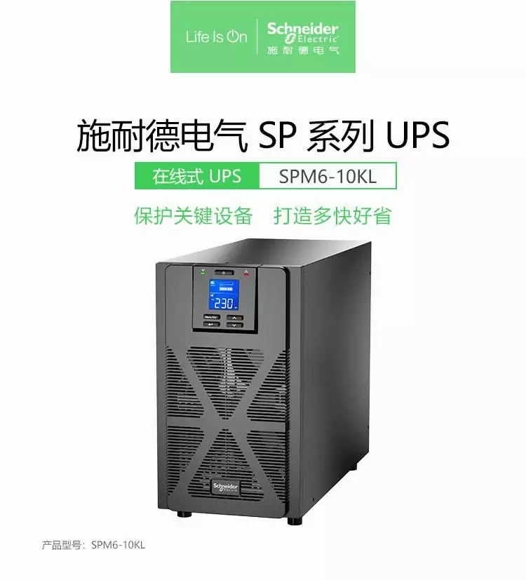 施耐德电气公司在中国市场销量前列的产品,生产制造的UPS类型涵盖商用SMV系列UPS,SP/SPM系列UPS,SPRM机架式UPS,Easy 3S UPS,Easy 3M UPS,Galaxy PW系列等UPS电源产品;容量范围从0.5KVA~1MKVA,主要应用于通信、楼宇、电力、工业自动化、钢铁、能源系统等,施耐德UPS成为国内电源行业十强品牌